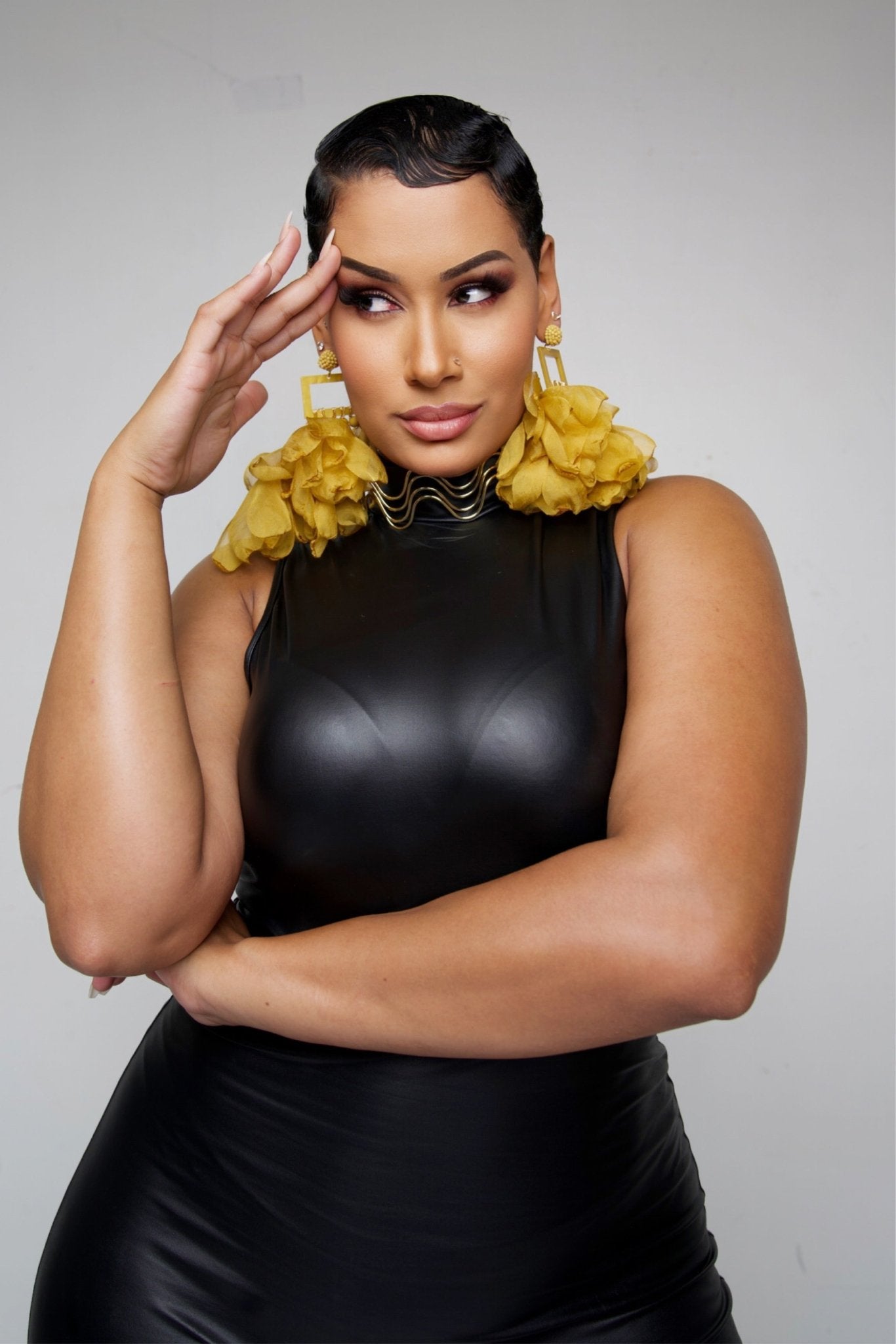 Nonso Square top flower petal earrings