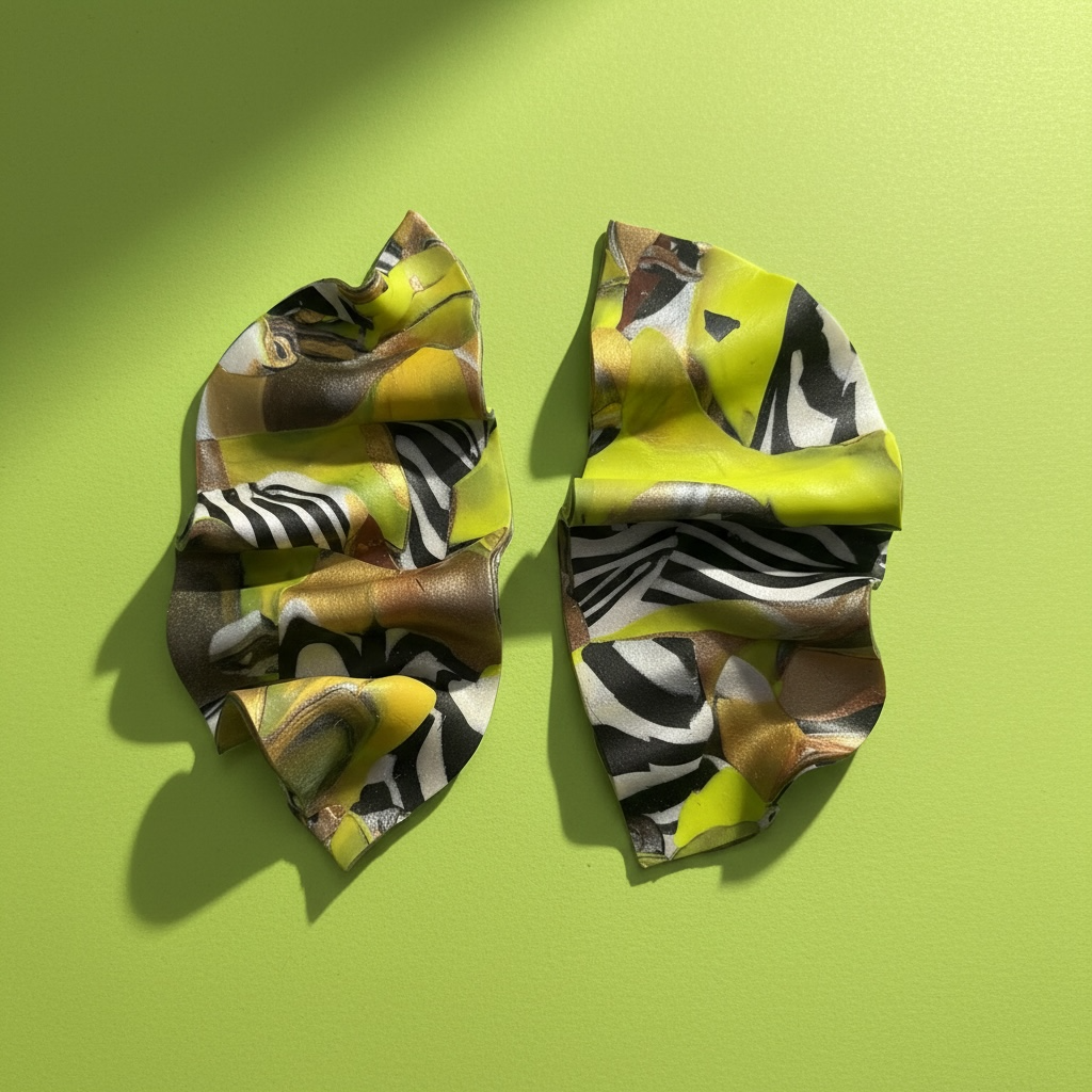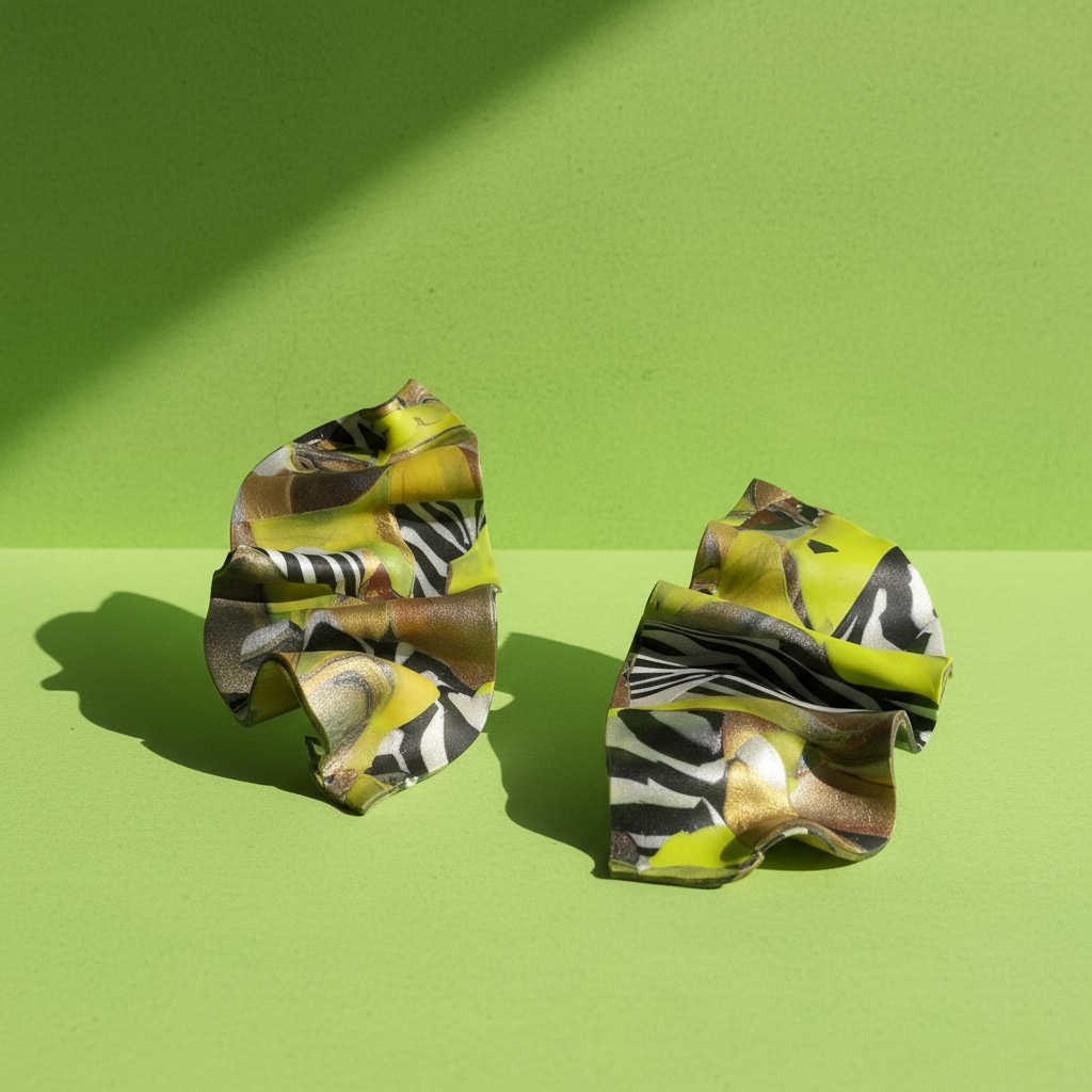 a retro mix, lime gold and  zebra rouched design polymer clay earring with silver post. approximately 4 inches in length.